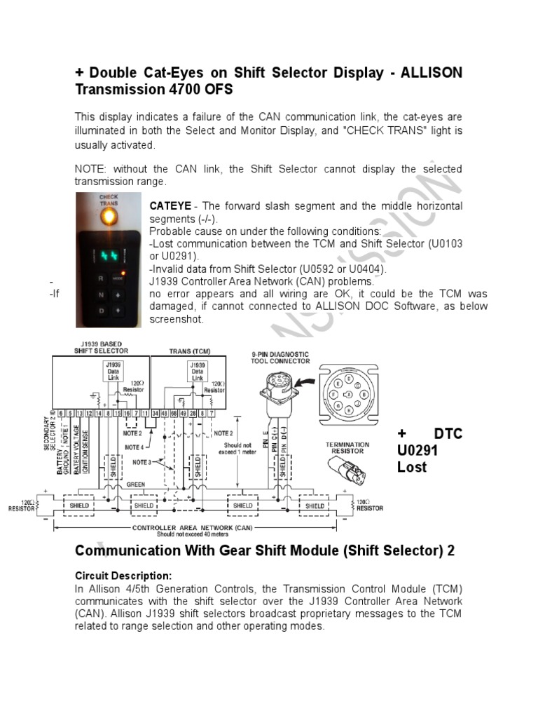Allison transmission control module problems.